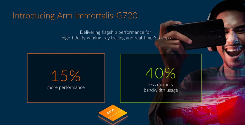 Arm’s latest GPUs are built on the 5th Gen GPU architecture, which is designed to be the most efficient GPU architecture the company has ever created. This architecture redefines parts of the graphics pipeline to reduce memory bandwidth, enabling the next generation of high-geometry games and real-time 3D applications. The new Immortalis-G720 is Arm’s most performant and efficient GPU ever, delivering smoother gameplay and complex PC and console-like experiences to mobile.