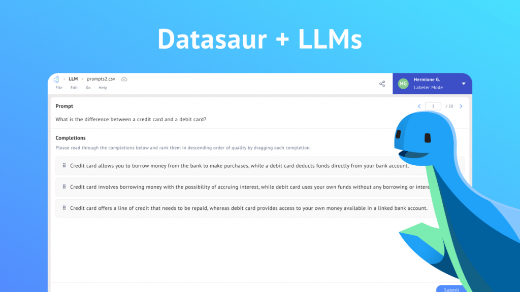 Data labeling just got easier with Datasaur’s latest feature that allows users to label data and train their own customized ChatGPT model. This user-friendly interface empowers both technical and non-technical individuals to evaluate and rank language model responses, which are then transformed into actionable insights.